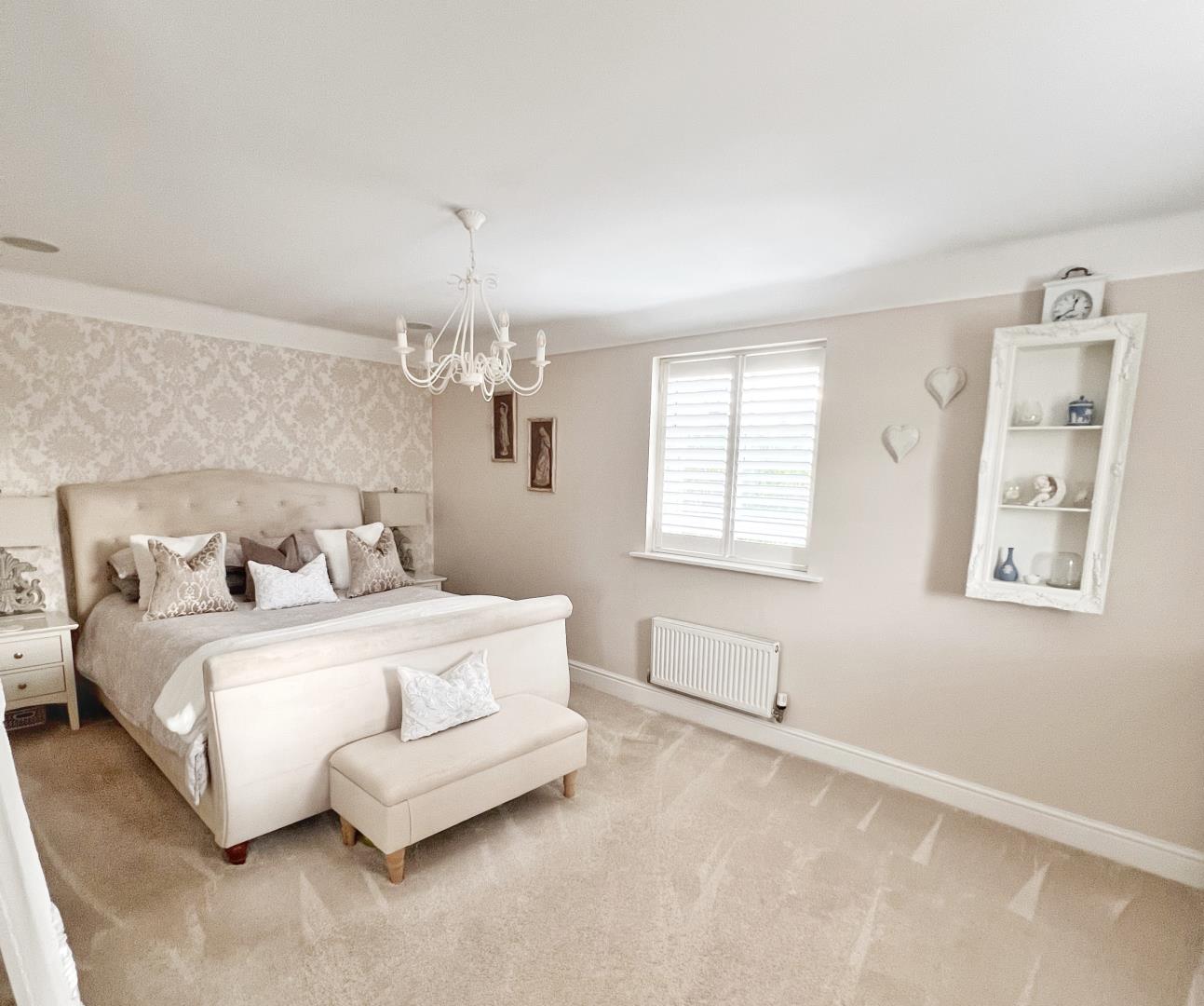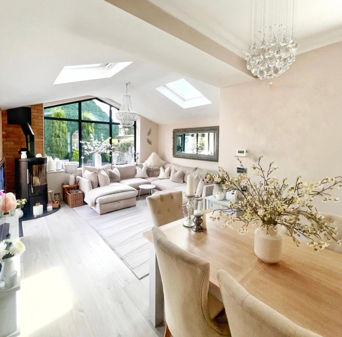 Bedroom One Fitted carpet. Coving to ceiling. Windows to side. Windows to rear. Spacious. Sash window. TV aerial point. Telephone socket. Pendant lights. Dimmer controlled lights. Central heating radiators. Dressing Area. En-suite Shower Room. Master Bedroom. Closet. Cupboard. Windows to front. Storage. Cat 6 Network point. Recessed spot lights. Bedroom Two Double Bedroom. Square room. Fitted carpet. Coving to ceiling. Sash window. TV aerial point. Telephone socket. Pendant lights. Dimmer controlled lights. Central heating radiators. Windows to side. Windows to rear. Bedroom Three Double Bedroom. Square room. Fitted carpet. Coving to ceiling. Windows to front. Sash window. Central heating radiators. TV aerial point. Telephone socket. Pendant lights. Dimmer controlled lights. Study/bedroom Single Bedroom. Study. Rectangular room. Fitted wardrobes. Fitted wardrobes. Fitted carpet. Coving to ceiling. Sash window. Windows to side. TV aerial point. Telephone socket. Internet point. Cat 6 Network point. Pendant lights. Central heating radiators. Cloakroom Storage. Mirror. Toilet. Washbasin with mixer tap. Laminate flooring. Pendant lights. En-suite shower room Spacious. Ceiling fan. Mirror. Storage. Porcelain Tiles to floor. Coving to ceiling. Recessed spot lights. Family bathroom Bathtub. Extractor fan. Fitted with a three piece suite. Mirrored cabinet. Washbasin with mixer tap. Shower over the bath. Spacious. Rectangular room. Porcelain Tiles to floor. Coving to ceiling. Windows to rear. Sash window. Heated towel rail. Recessed spot lights. Garage Brick built garage. Detached gargage. Electric Up & Over Doors. Storage. Door to garden. Cat 6 Network point. Fluorescent strip lights. LED strip light. Loft hatch. Garden Patio. Lawn. Door to rear. Hallway Entrance hall. Staircase leading to upper floors. Laminate flooring. Cornicing to ceiling. Entrance door. Pendant lights. Central heating radiators. Landing Spacious. Fitted carpet. Coving to ceiling. Loft hatch. Windows to side. Pendant lights. Central heating radiators. Living room Lounge. Rectangular room. Oak Wood flooring. Coving to ceiling. Windows to side. Windows to front. Bay window. Wall mounted fireplace. Log effect fireplace. Electric fireplace. TV aerial point. Telephone socket. Central heating radiators. Cat 6 Network point. Pendant lights. Dimmer controlled lights. Open plan kitchen / living room Fitted with a matching range of base & eye level units. Including matching island unit. Appliances - Bosch. Counter tops - Quartz. Dishwasher. Extractor hood Overhead. Fully fitted kitchen. Hob - Gas. Kitchen / Living Room. Kitchen diner. Tumble Dryer. Washing machine. Pantry. Spacious. Underfloor heating. Storage. Alcoves with shelving. Laminate flooring. Coving to ceiling. Vaulted Ceiling. Double bi-fold door. Door to garden. Windows to side. Windows to rear. Sash window. Electric shutter to window. Velux window. Stove with glass door. Wood burner fire. TV aerial point. Telephone socket. Central heating radiators. Cat 6 Network point. Dimmer controlled lights. Recessed spot lights. Chandelier. Down lighting. Pendant lights. Open Plan Living .